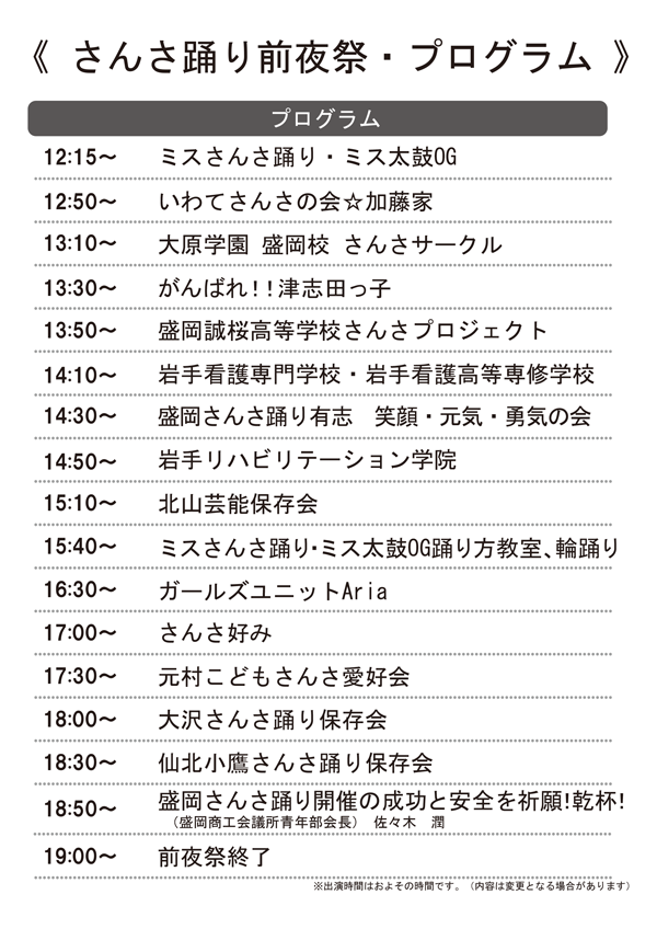 ◎ 魅せるさんさパレード・第1部 ◎ 魅せるさんさパレード・第2部 ◎ 愉しむさんさ輪踊り
